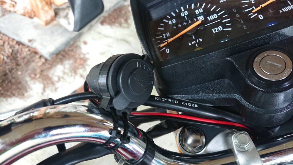 そこでUSB電源をCG125に取り付けました。